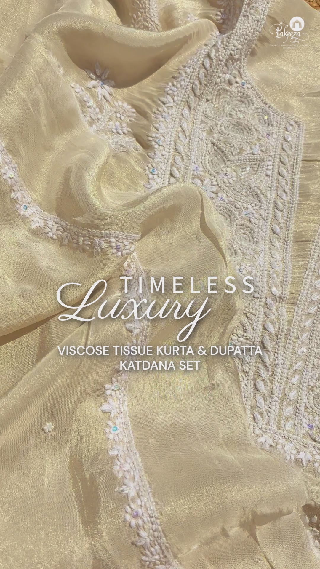 Zaara - Nayaab Beige Tissue Chanderi Chikankari Kurta & Dupatta Fabric (Unstitched)