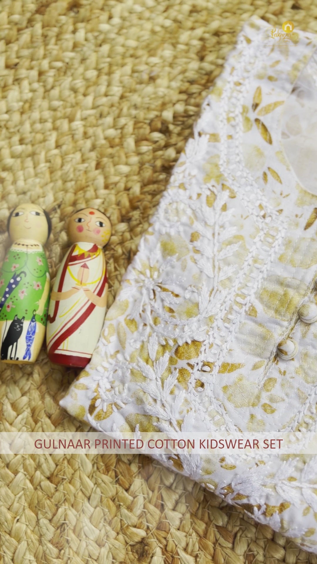 Gulnaar Beige Printed - Cotton Chikankari Kidswear Set