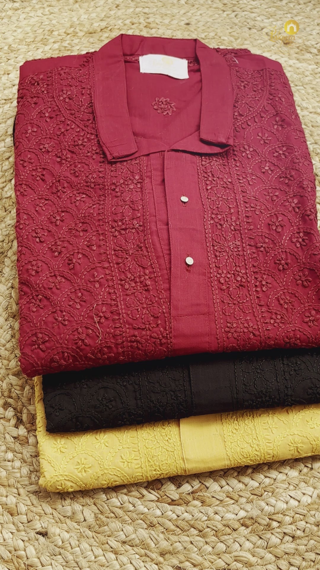 Faiz Muskmelon - Cotton Chikankari Short Kurta