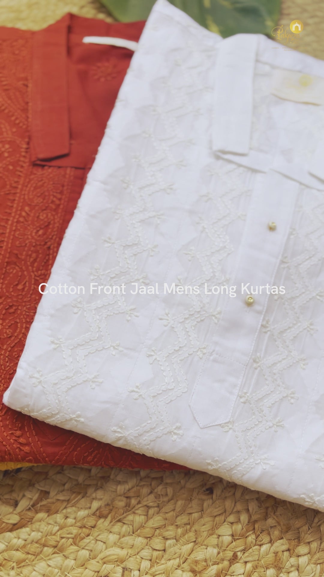 White Full Jaal - Nawab Cotton Men Chikankari Long Kurta