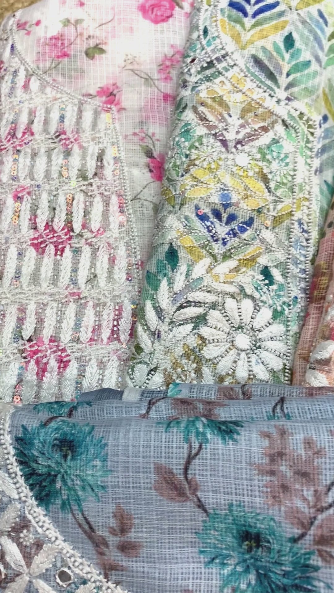 Light Blue - Nayaab Katdana Kota Printed Chikankari Full Dress Set