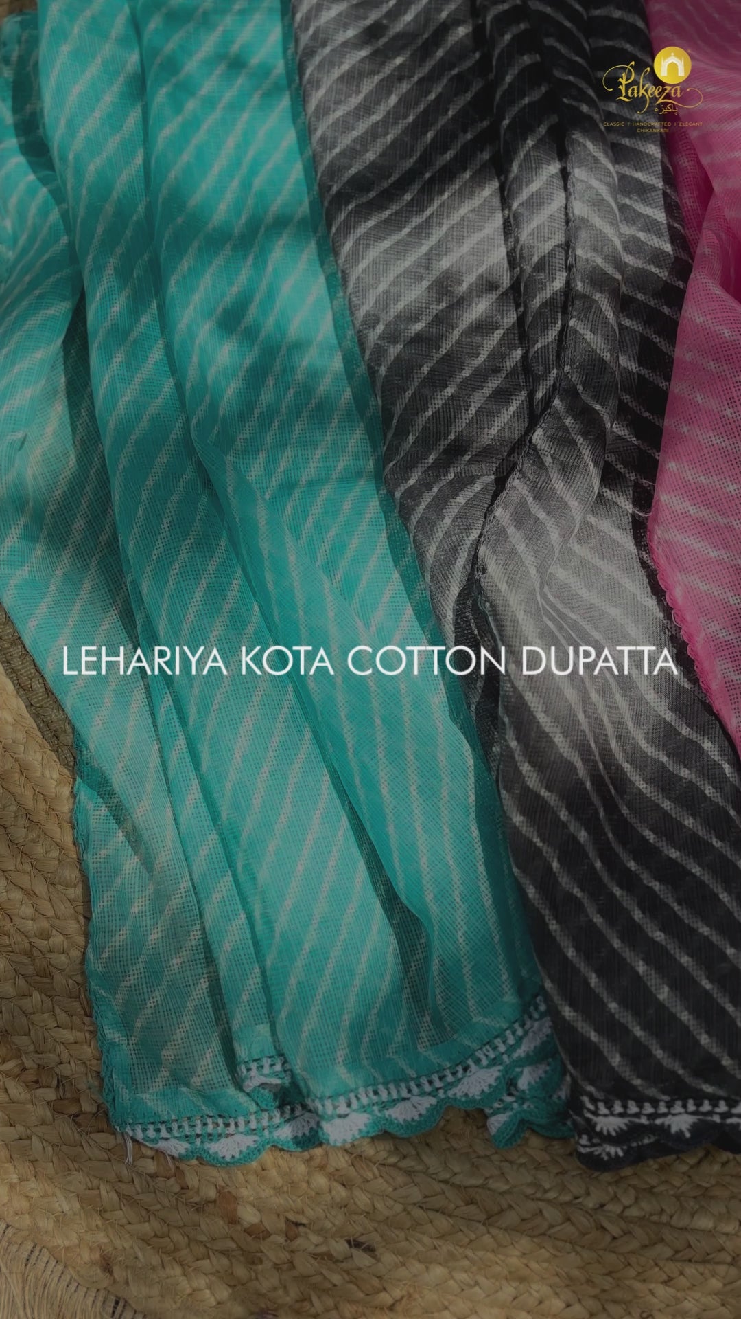 Green Lehariya - Nazm Kota Cotton Chikankari Dupatta with Sequins