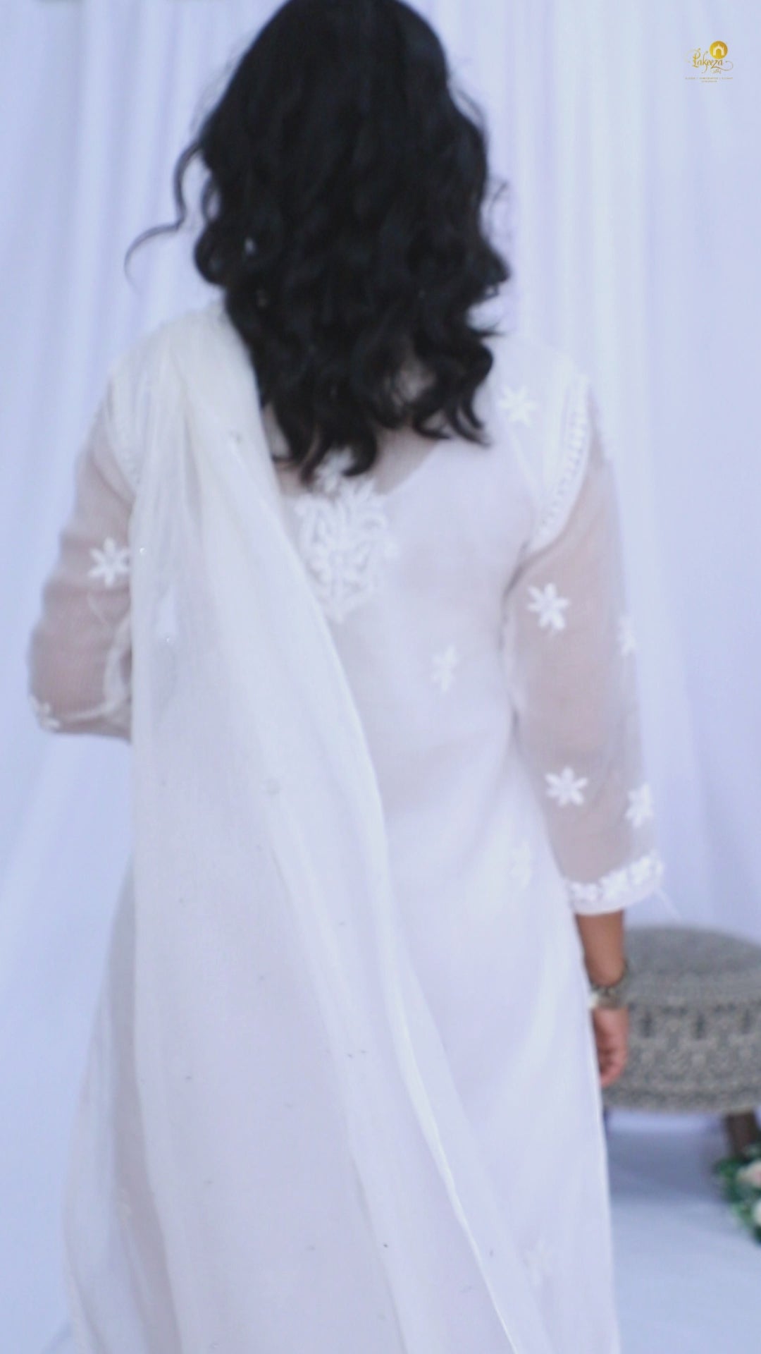 White Mukaish - Bahaar Cotton Terry Voile Chikankari Angarakha