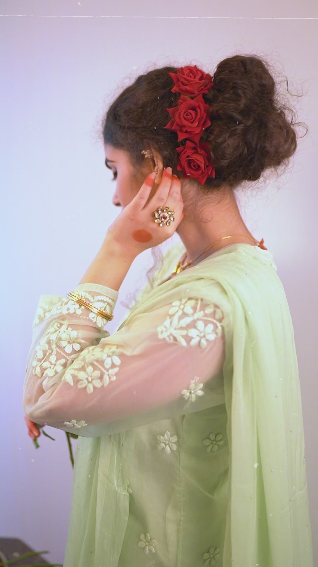 Green Buttons - Gulshan Cotton Chikankari Short Top