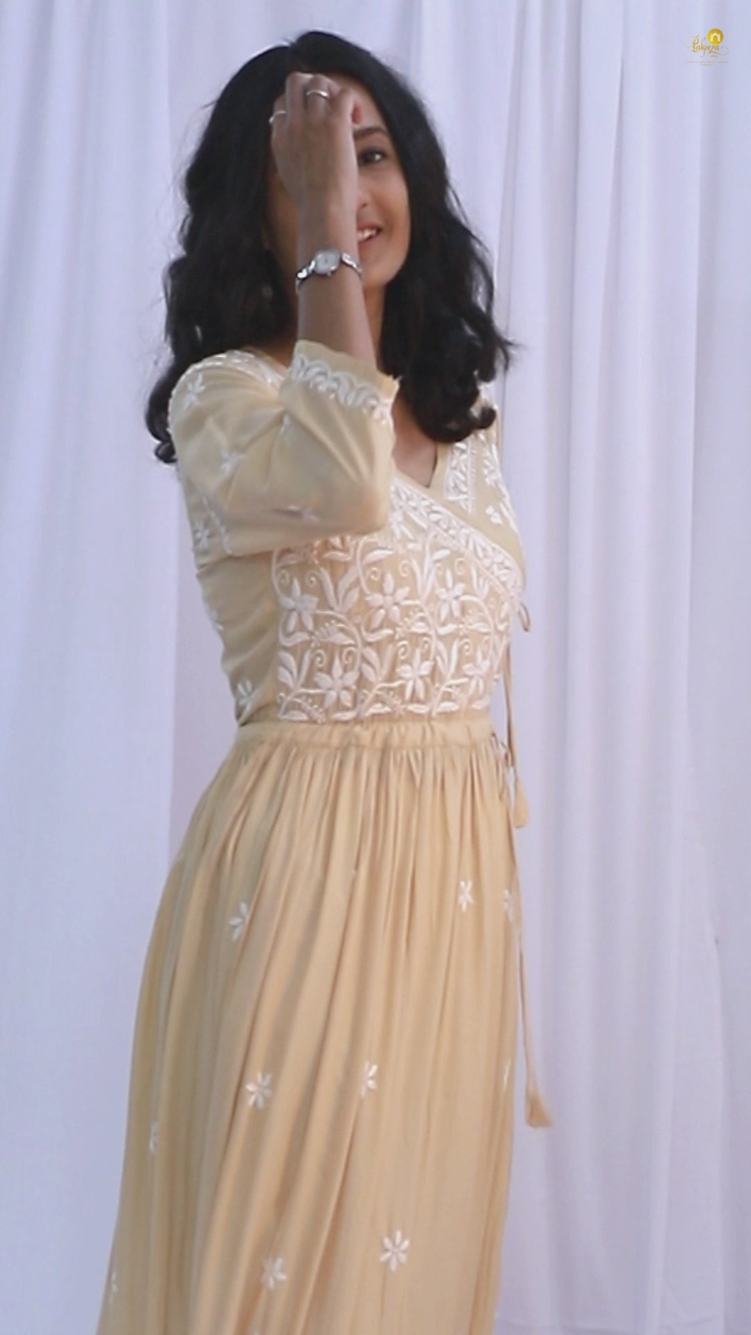 Inara Coco - Nargis Viscose Short Anarkali Chikankari Gharara Set