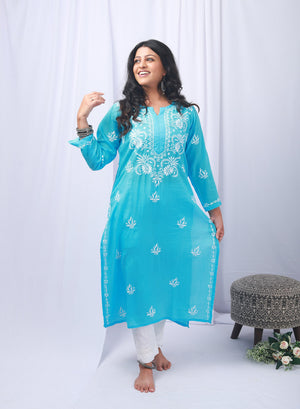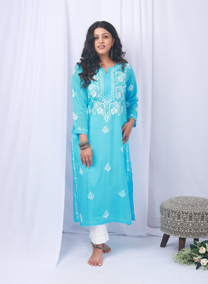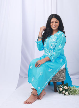 Afsoon Sky Blue - Bahaar Modal Chikankari Kurta