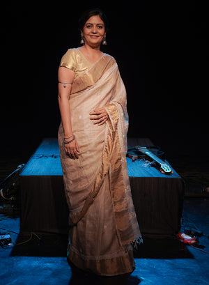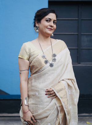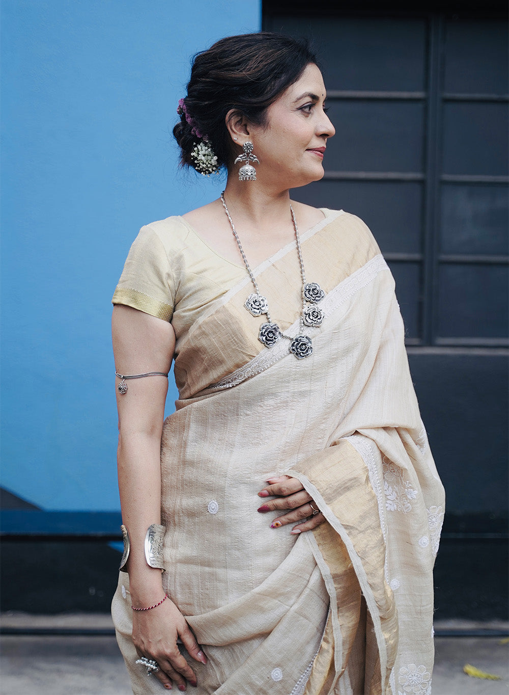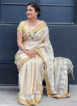 Amruta - Aks Resham Pure Raw Silk Chikankari Zari Border Saree