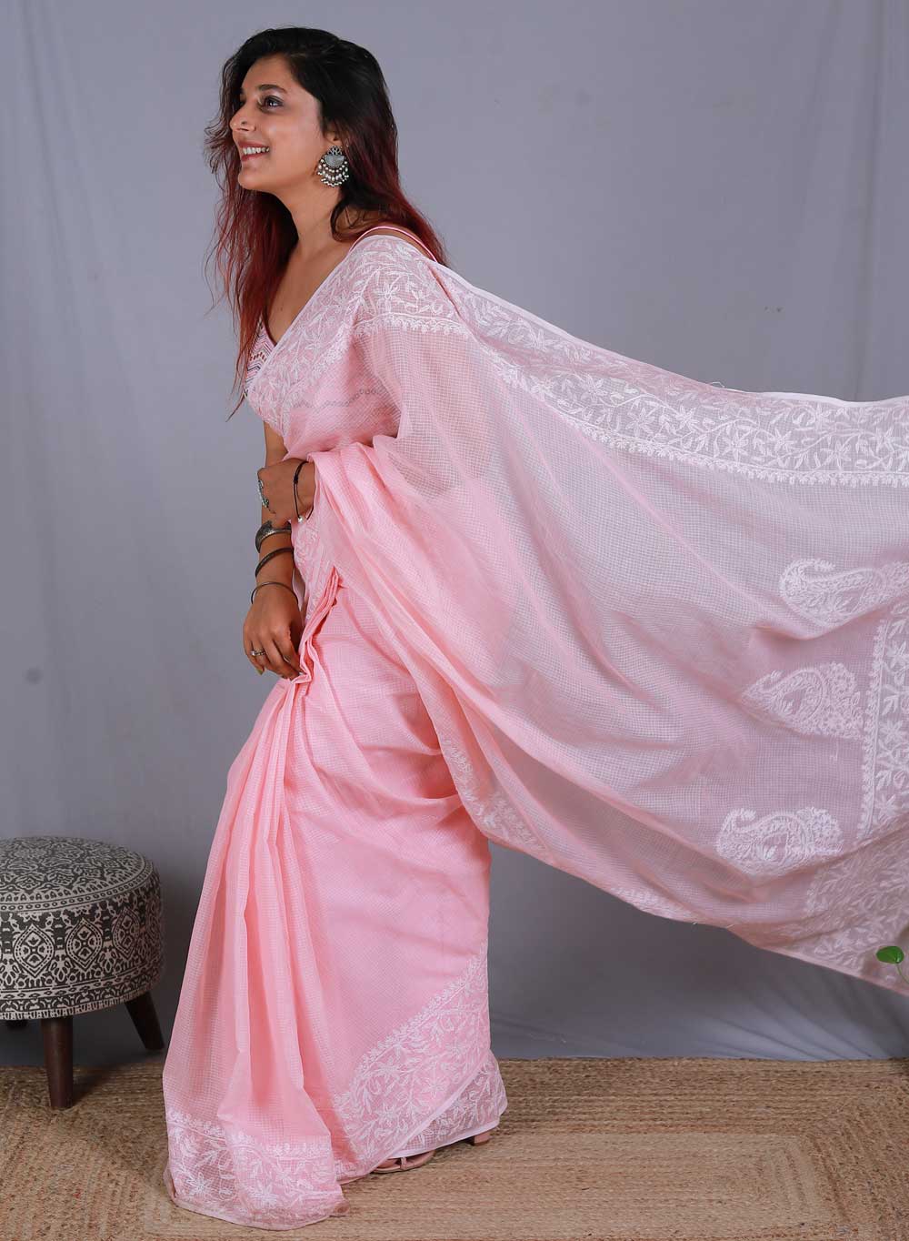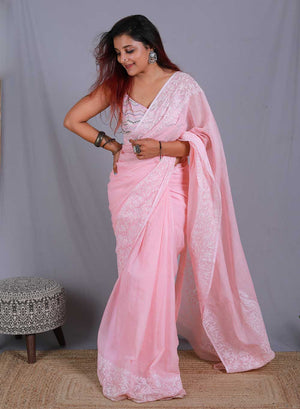 Our Aks Collection of Cotton hand embroidered Chikankari Sarees, are adored for their lovely texture that can only be felt once you embrace it.