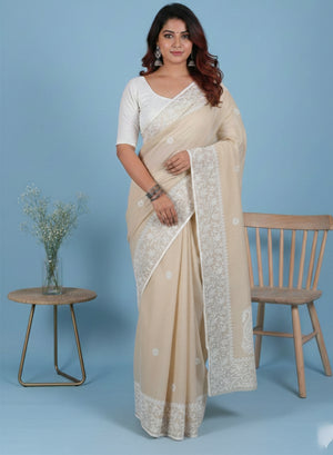 Our Aks Collection of Cotton hand embroidered Chikankari Sarees, are adored for their lovely texture that can only be felt once you embrace it.