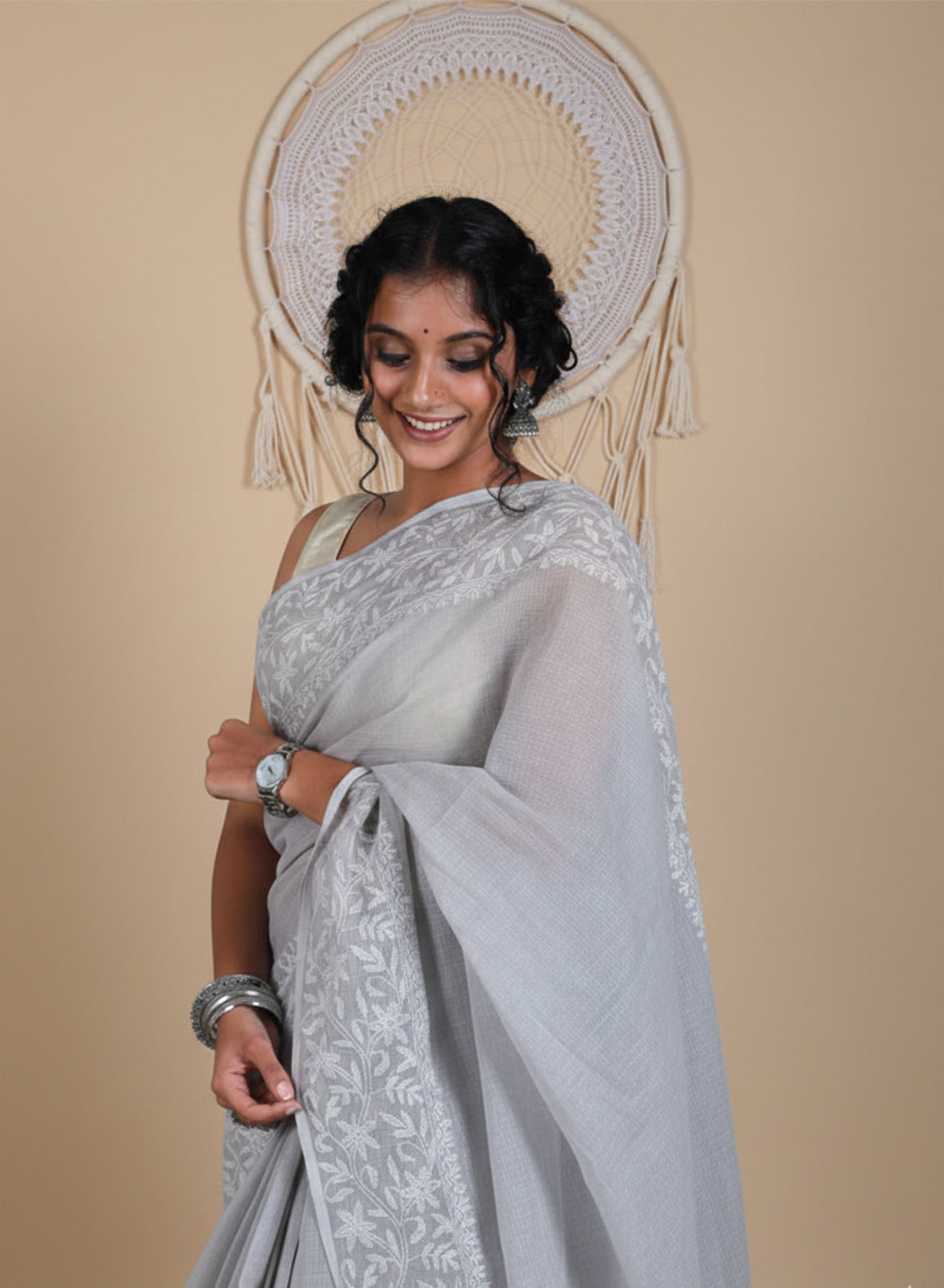Our Aks Collection of Cotton hand embroidered Chikankari Sarees, are adored for their lovely texture that can only be felt once you embrace it.