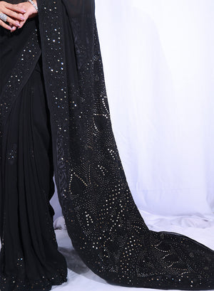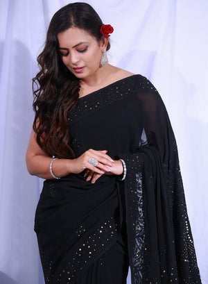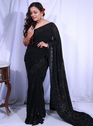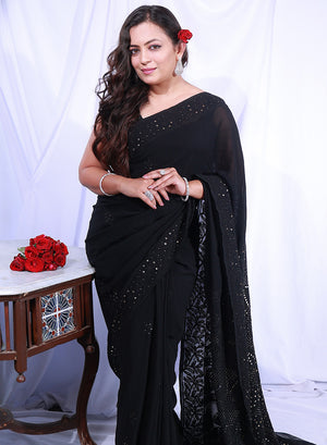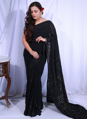 Black Mukaish - Aks Viscose Chikankari Saree