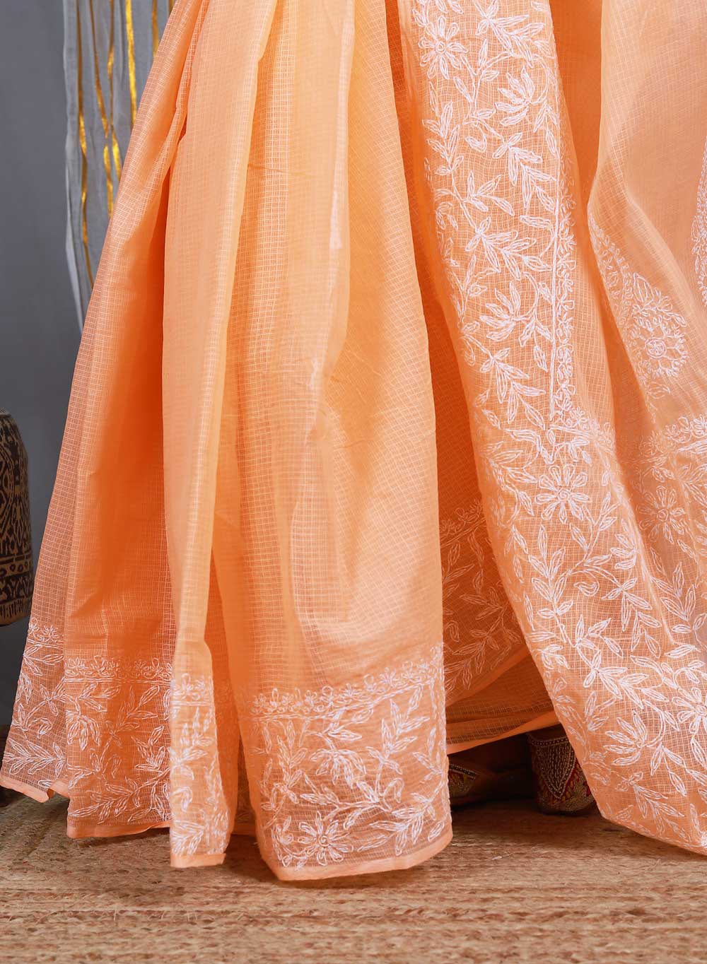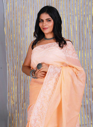 Aparajita Muskmelon - Aks Kota Cotton Chikankari Saree