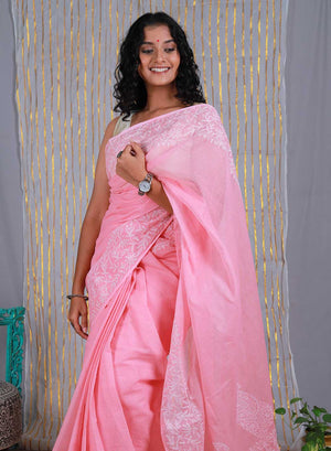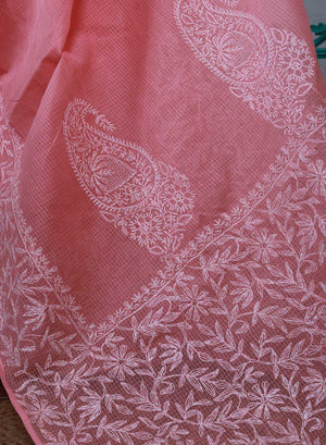 Aparajita Peach Pink - Aks Kota Cotton Chikankari Saree