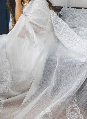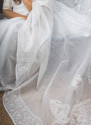 Aparajita White - Aks Kota Cotton Chikankari Saree