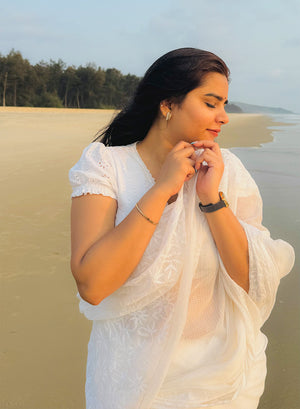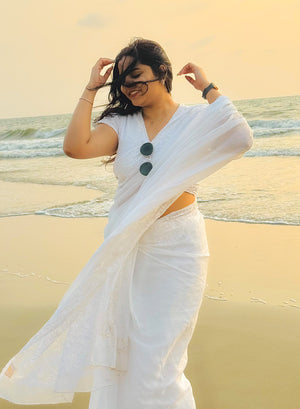 Our Aks Collection of Cotton hand embroidered Chikankari Sarees, are adored for their lovely texture that can only be felt once you embrace it.
