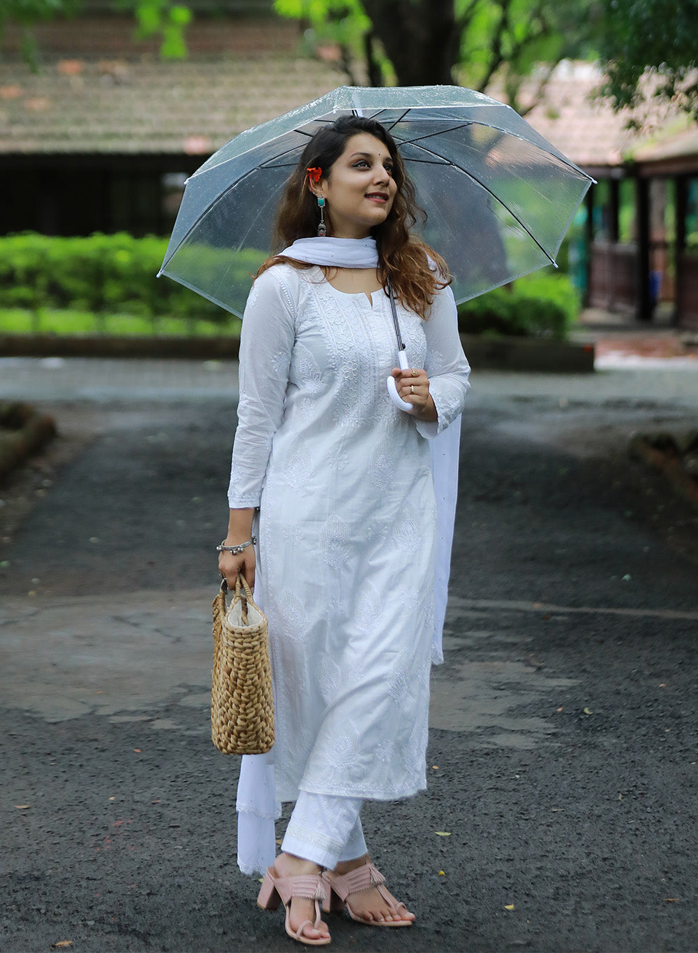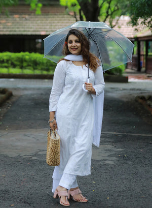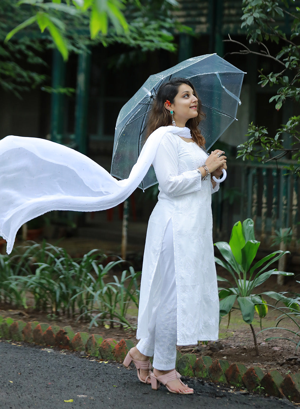 Apurva - White Pearls Anjuman Pure Mulmul Chikankari Kurta