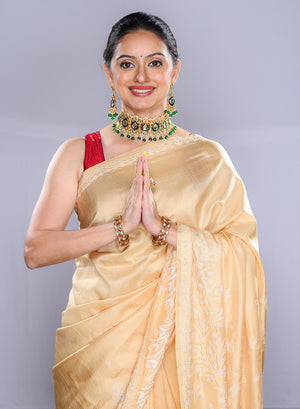 Beige Aks - Pure Tussar Silk Chikankari Saree