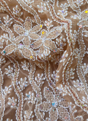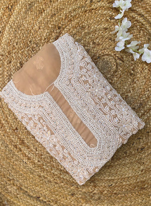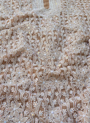 Beige Moti Sequin Georgette Chikankari - Nayaab Full Dress Set