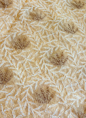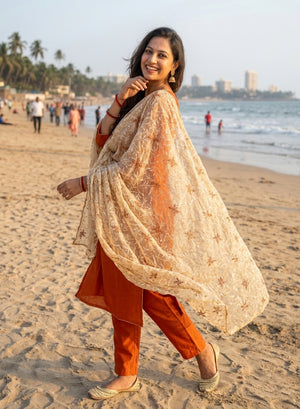 Beige - Nazm Kota Cotton Chikankari Dupatta With Brown Thread Embroidery