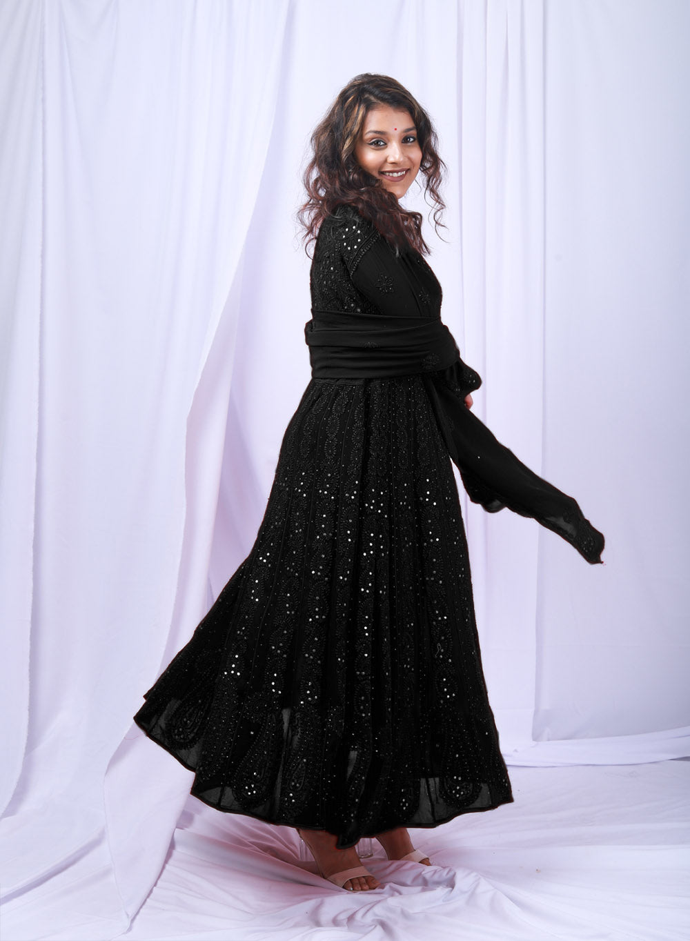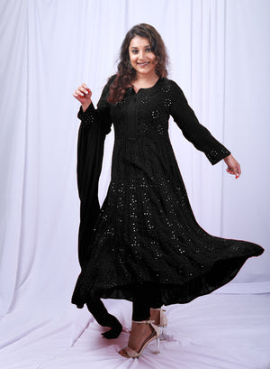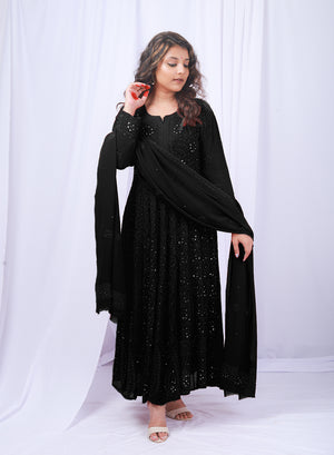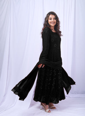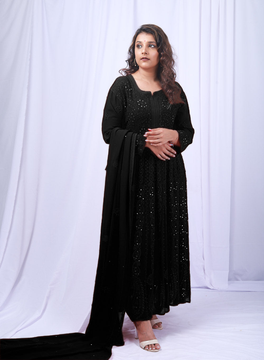 Ishq Black - Viscose Anarkali & Dupatta Nargis Chikankari Set
