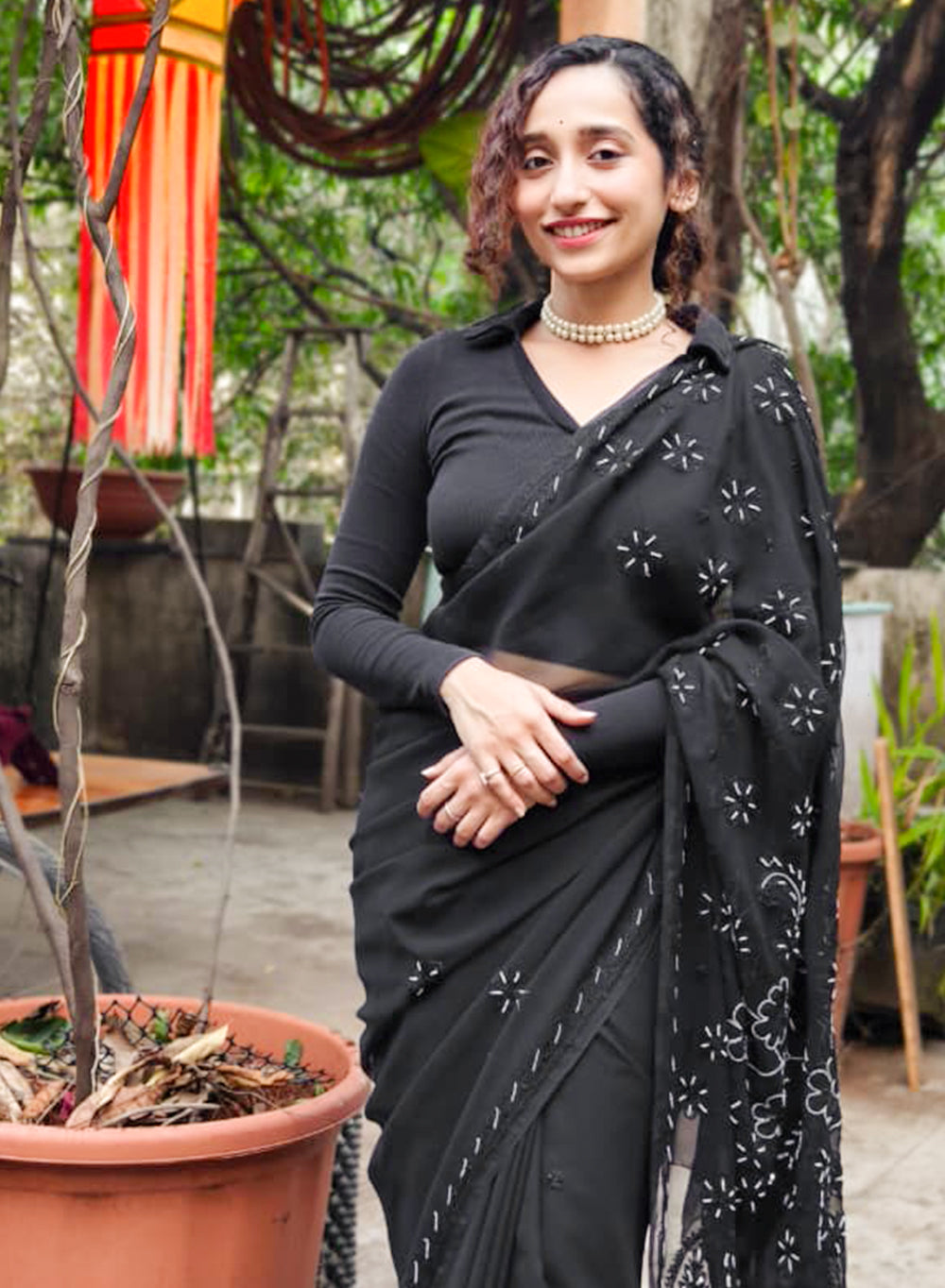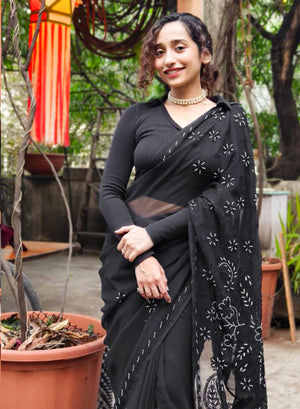 Black Katdana - Aks Georgette Chikankari Saree