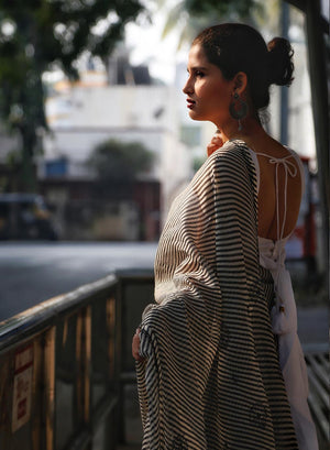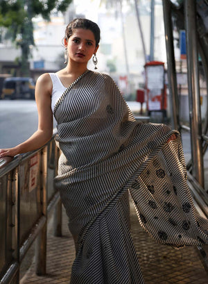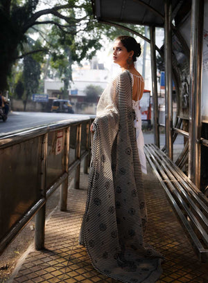 Black Lehariya - Kota Aks Cotton Chikankari Saree