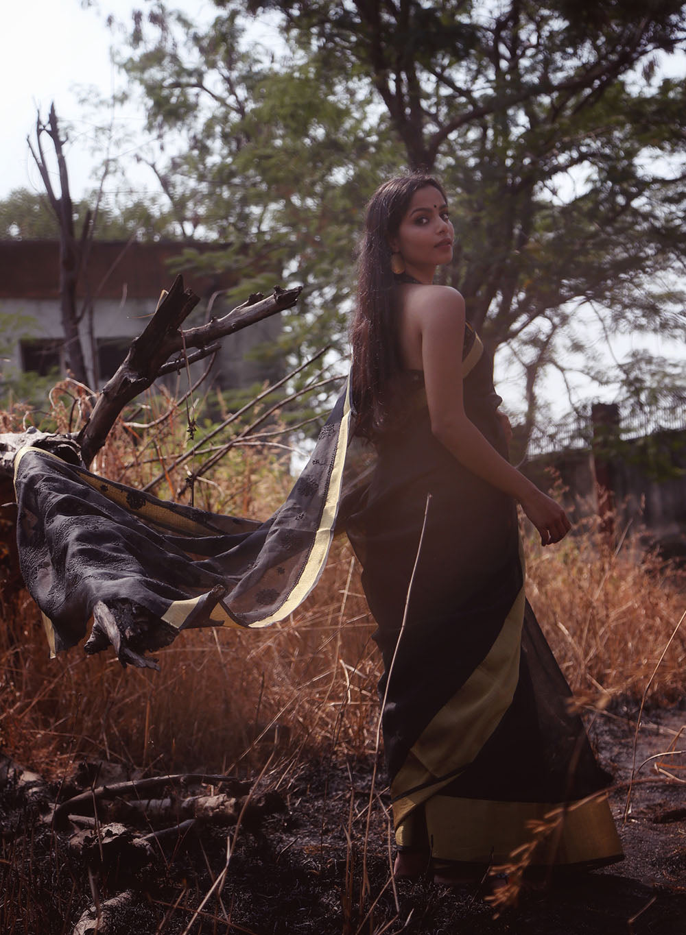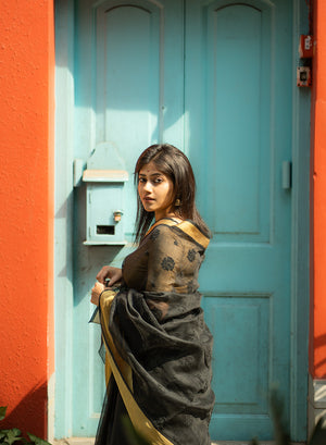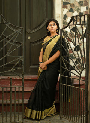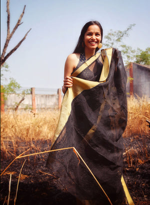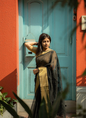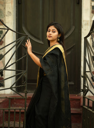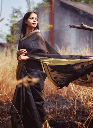 Black Zari Kota Chanderi - Aks Cotton Chikankari Saree