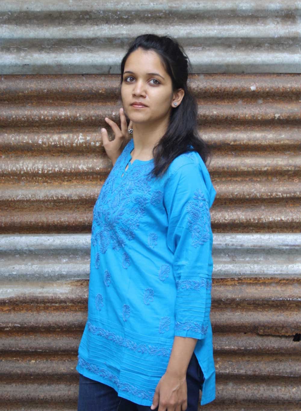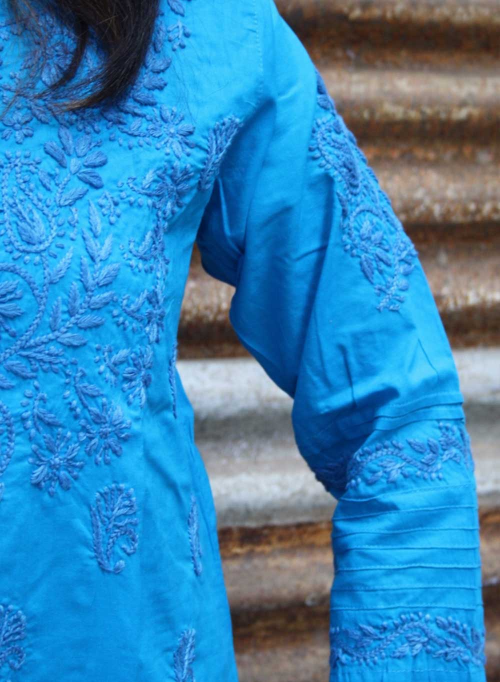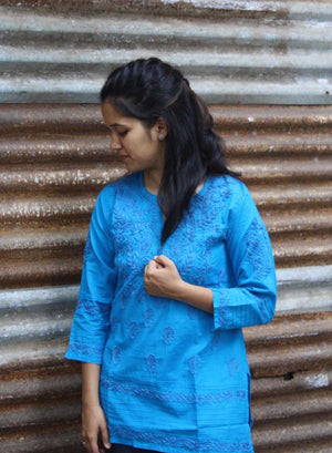 Blue - Gulshan Cotton Chikankari Short Top