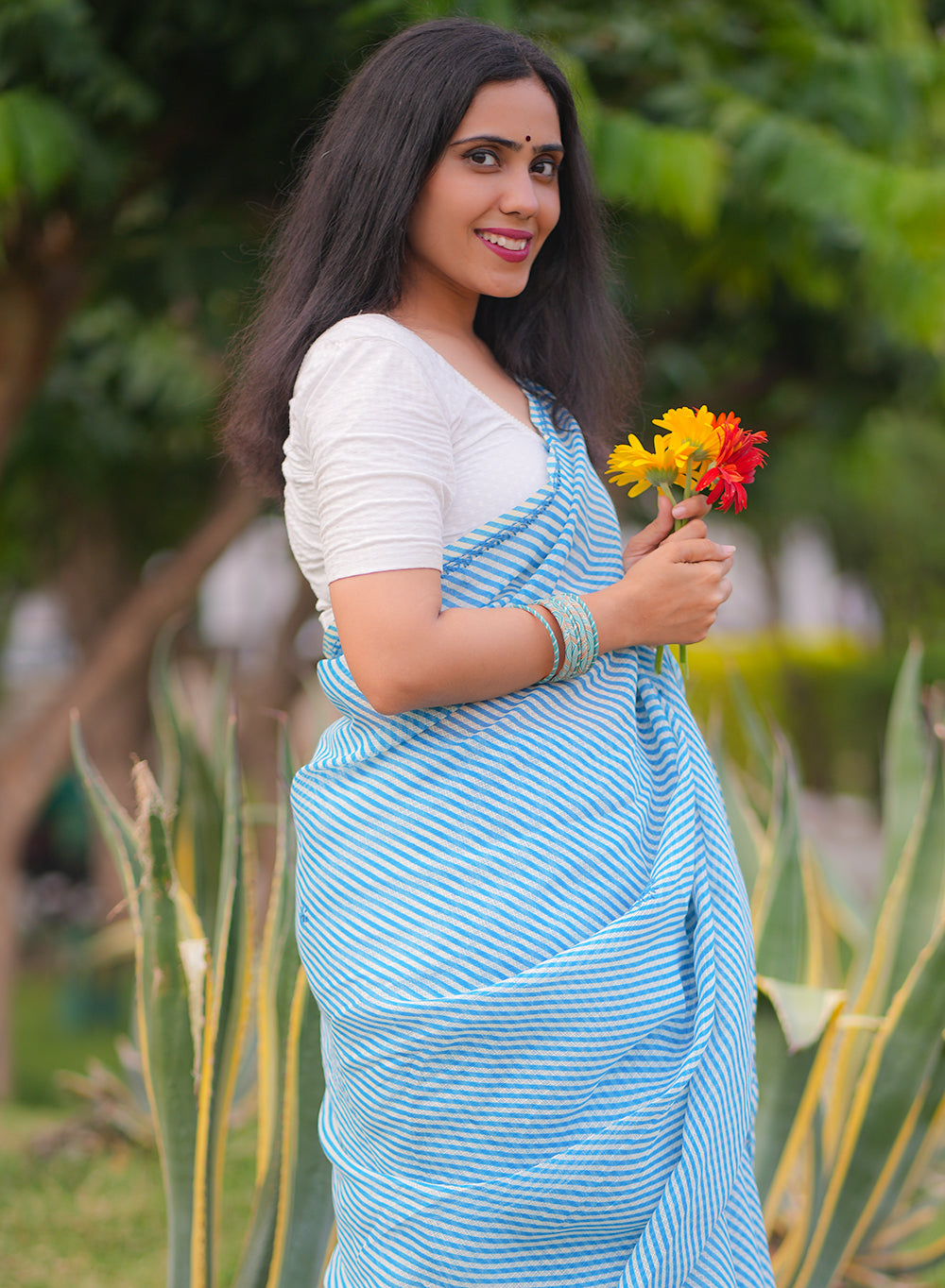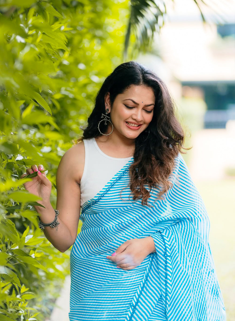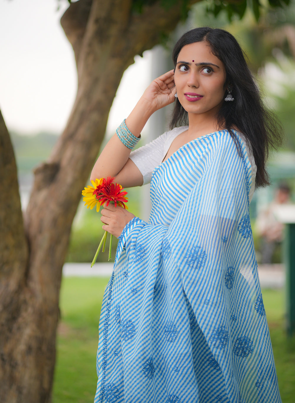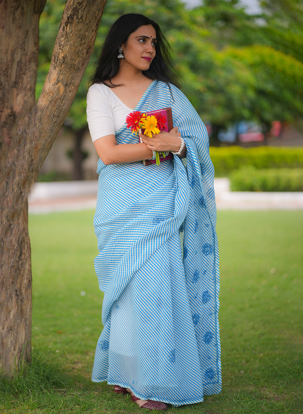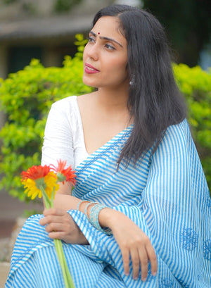 Blue Lehariya - Kota Aks Cotton Chikankari Saree