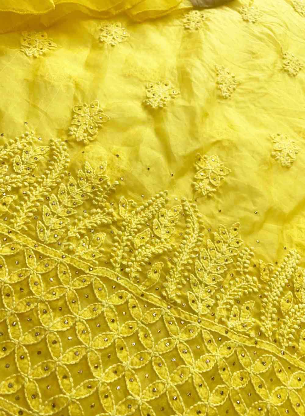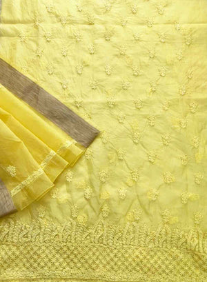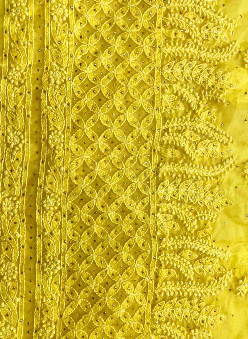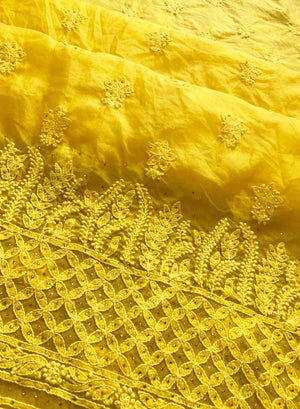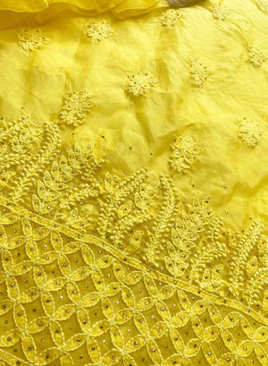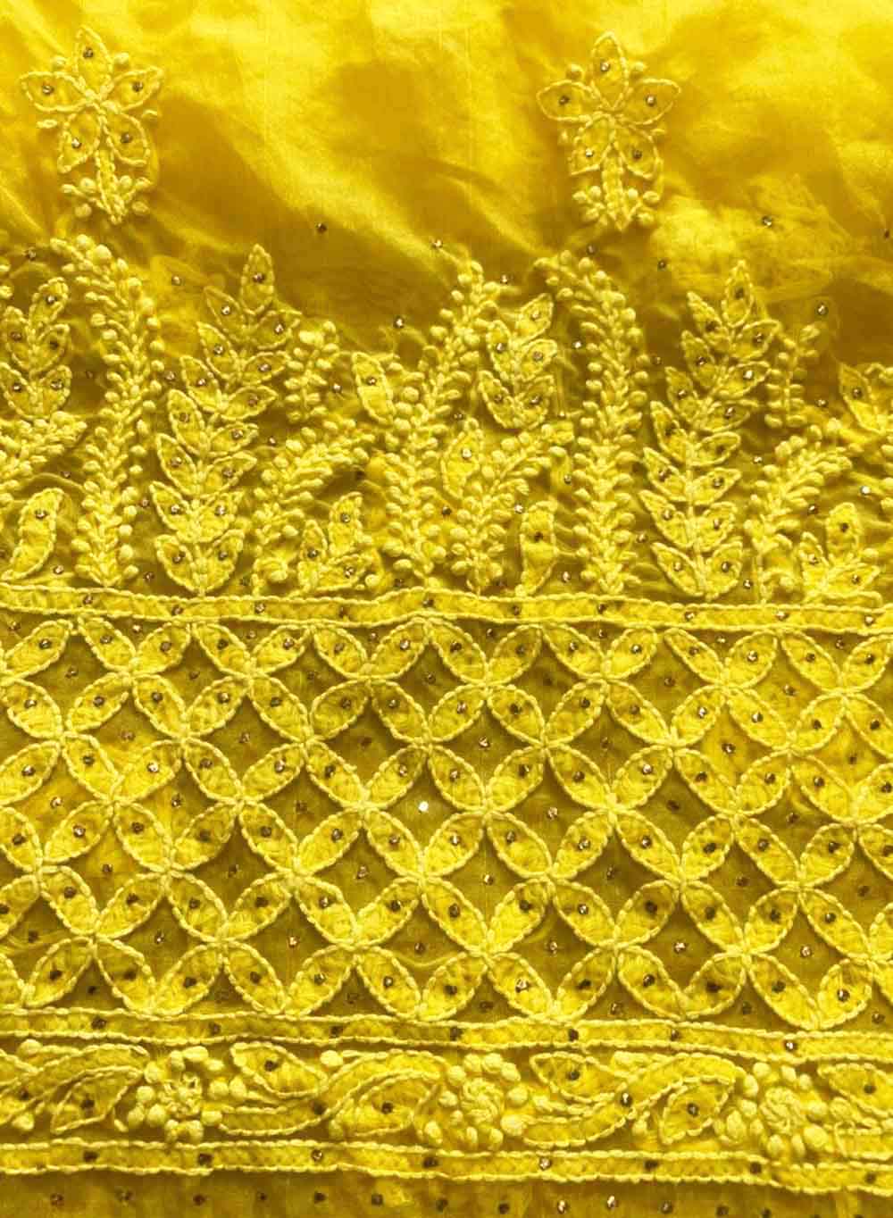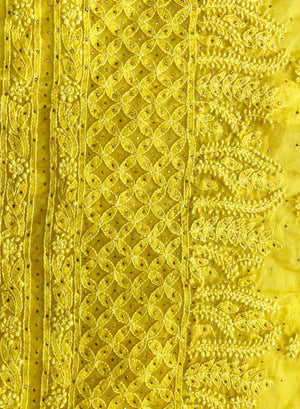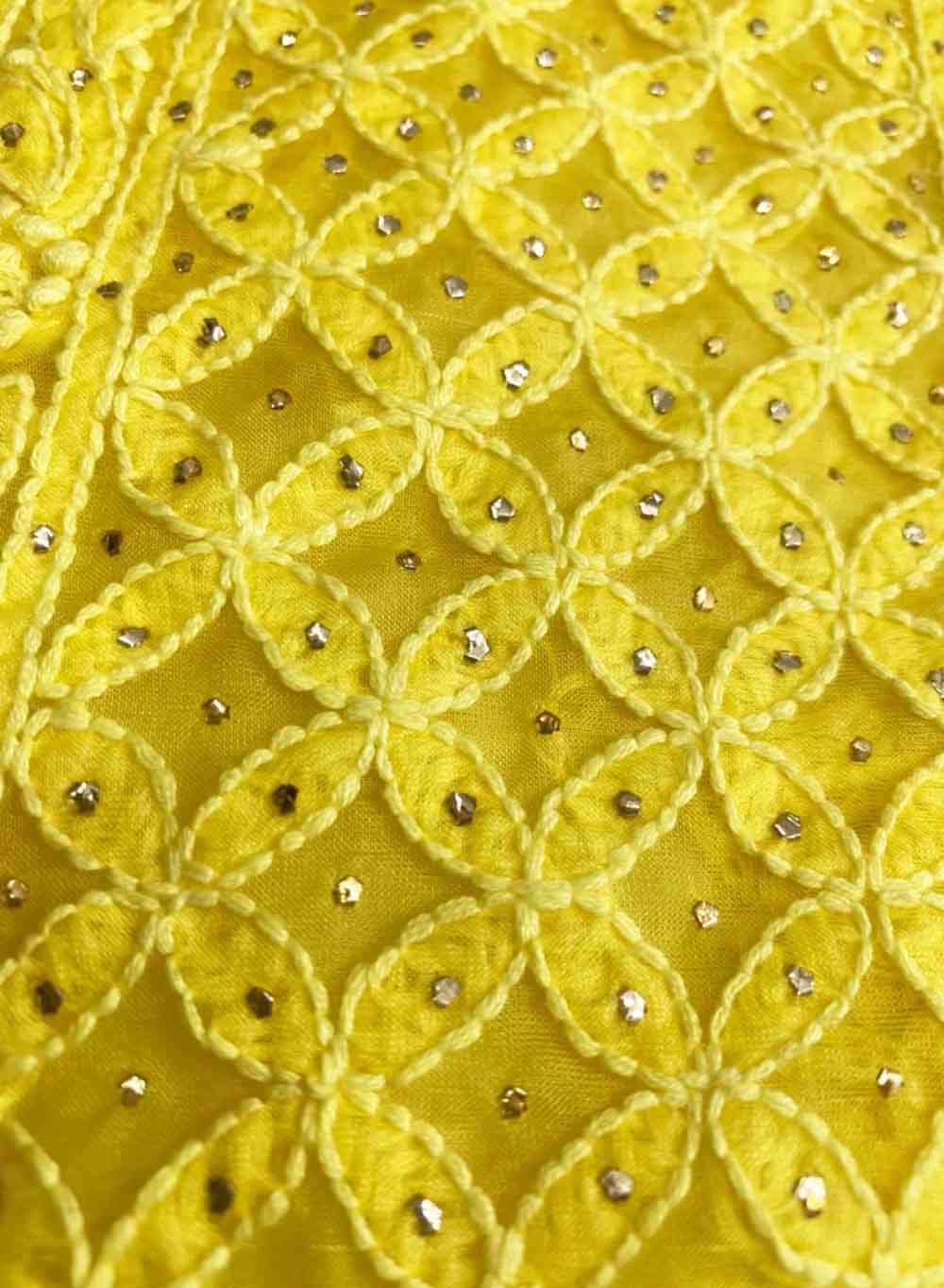 Bright Yellow Faux Organza Mukaish - Nayaab Kurta Chikankari Kurta & Dupatta Fabric