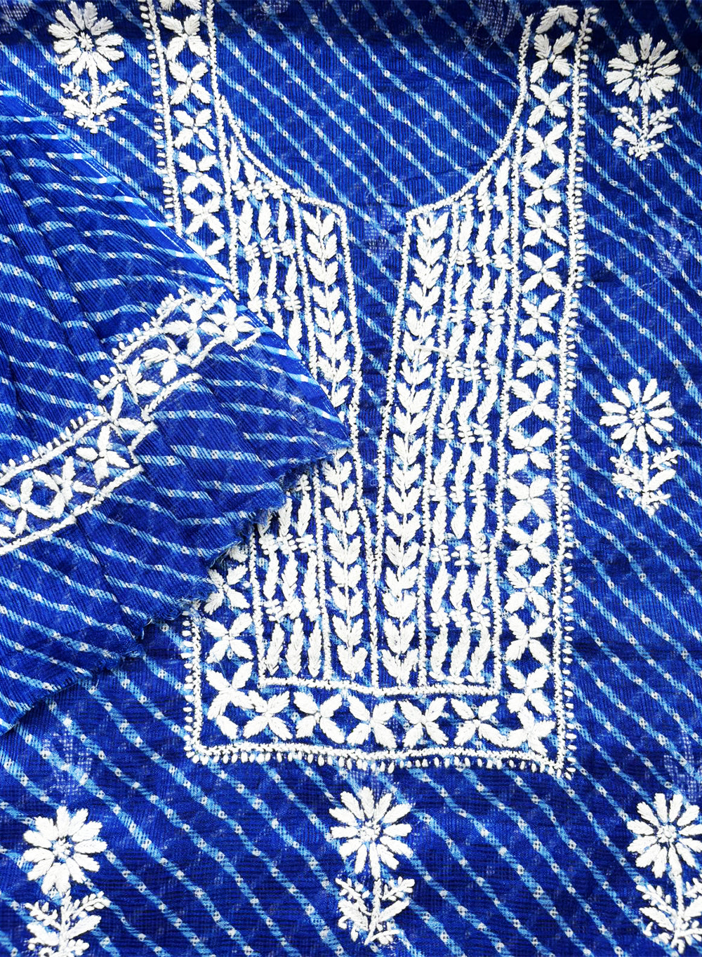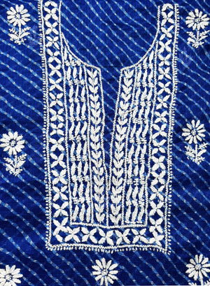 Dark Blue Lehariya - Nayaab Kota Cotton Chikankari Kurta & Dupatta Set