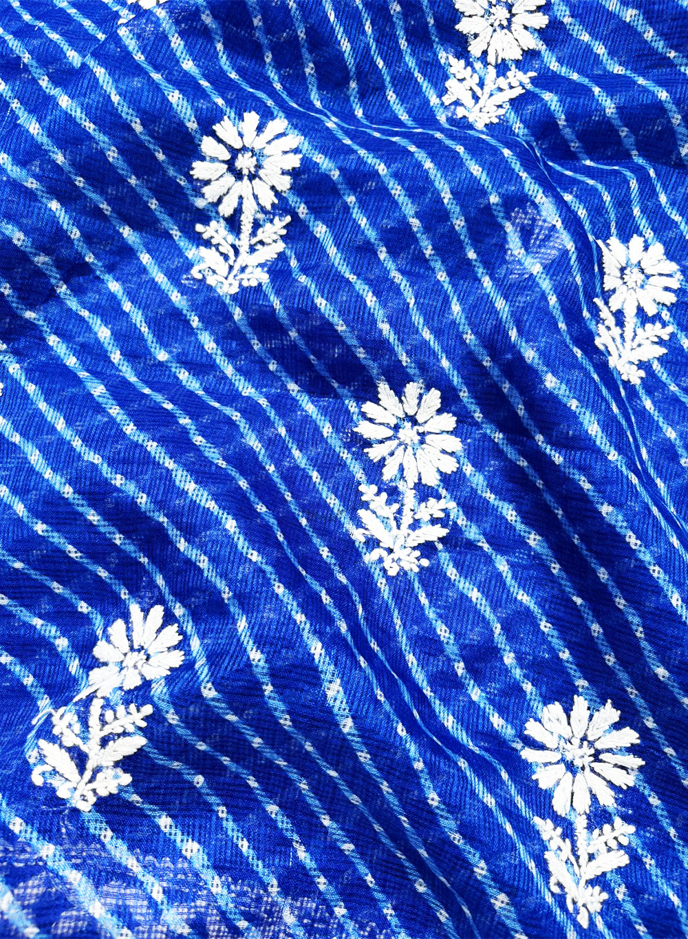 This beautiful lehariya kota cotton kurta & dupatta material, has hand embroidered motifs, with white twisted cotton thread.