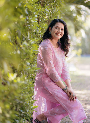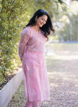 Eraya Baby Pink - Mul Chanderi Nargis Chikankari Set