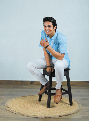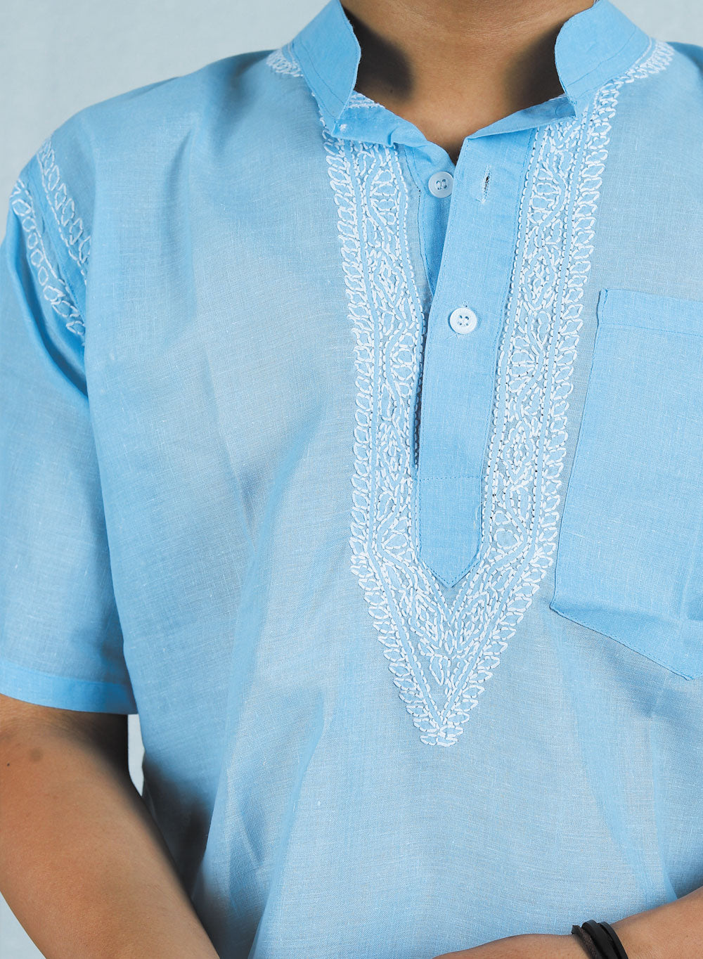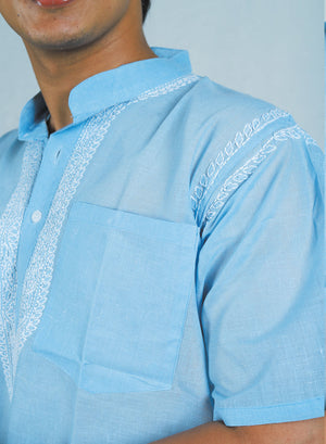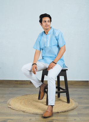 Faiz Blue - Cotton Chikankari Short Kurta