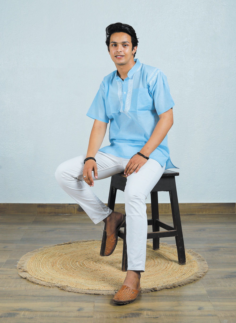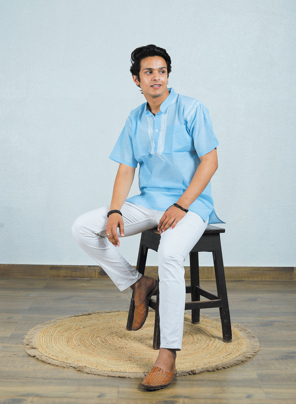 The color, embroidery and fabric of the kurta offers a relaxed silhouette and comfort to the wearer.