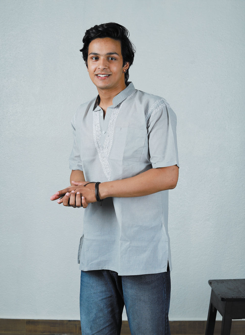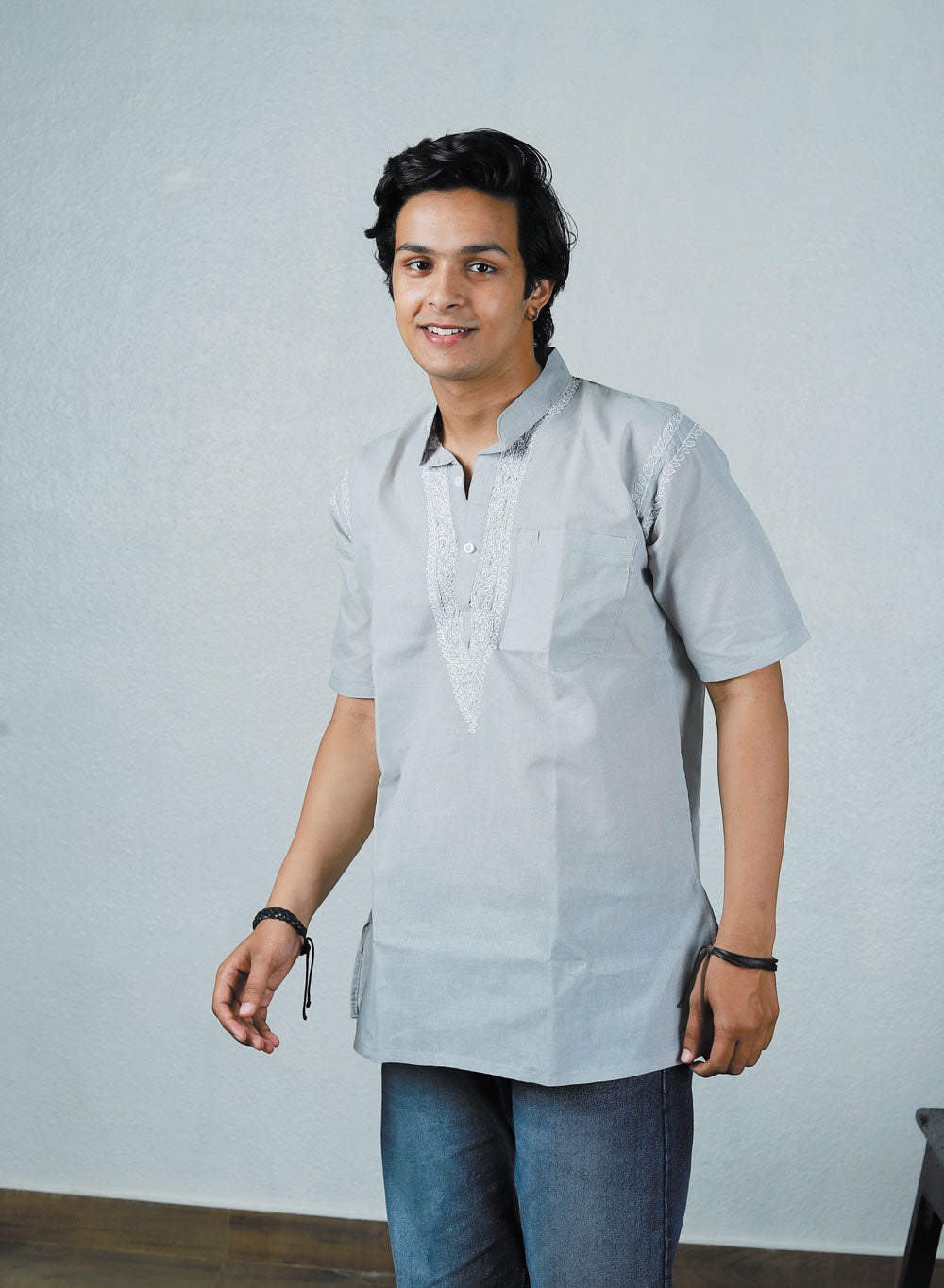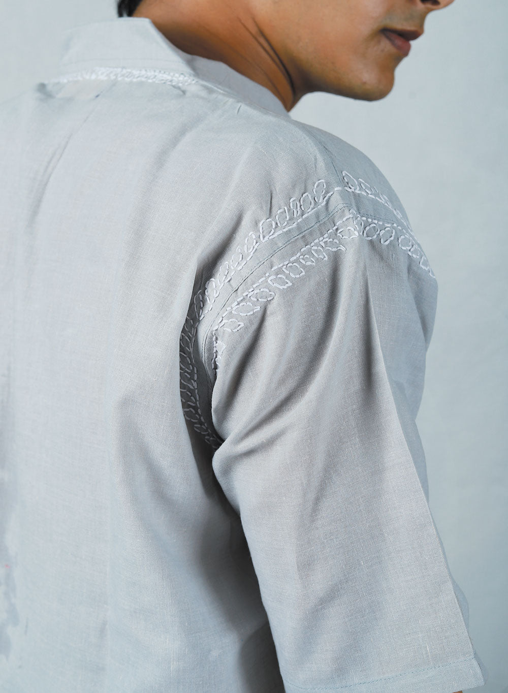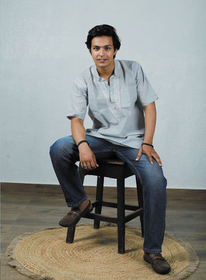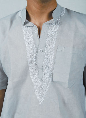 Faiz Gray - Cotton Chikankari Short Kurta