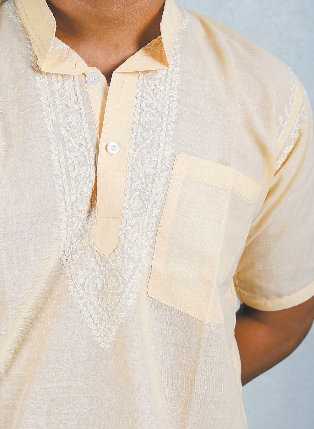 Purely made through dedicated handwork by skilled artisans we present to you FAIZ, Mens Short Kurta Collection by Pakeeza.