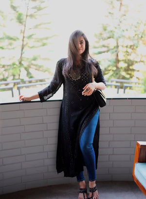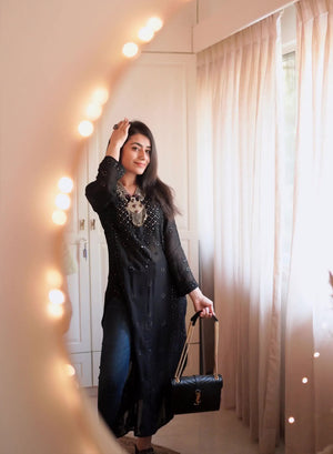 Fanaa Black - Anjuman Viscose Mukaish Kurta