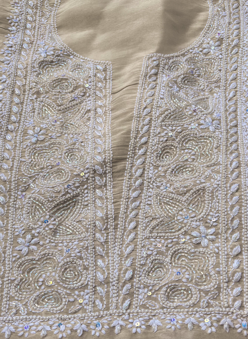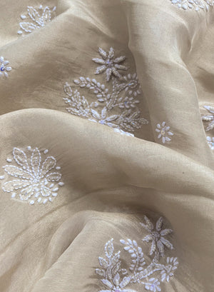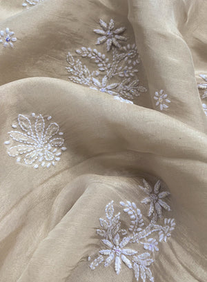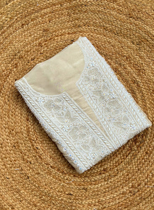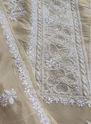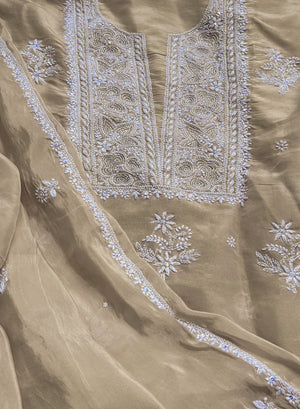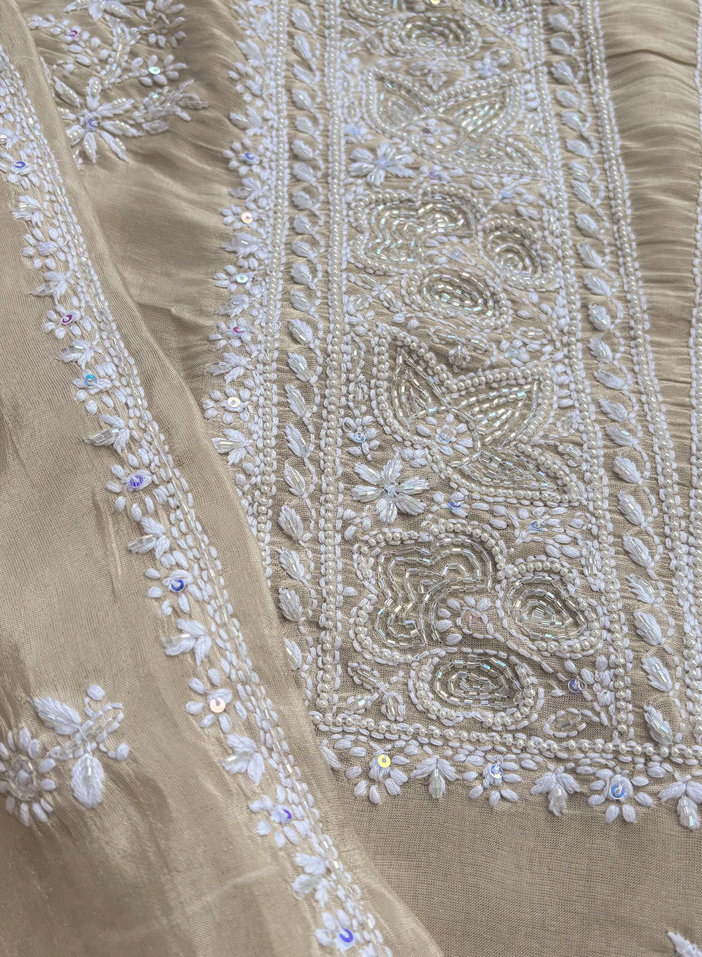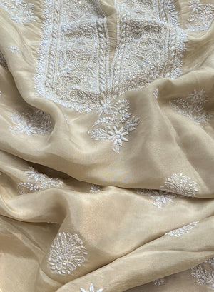 Golden - Nayaab Viscose Tissue Chikankari Kurta & Dupatta Fabric With Cutdana Work