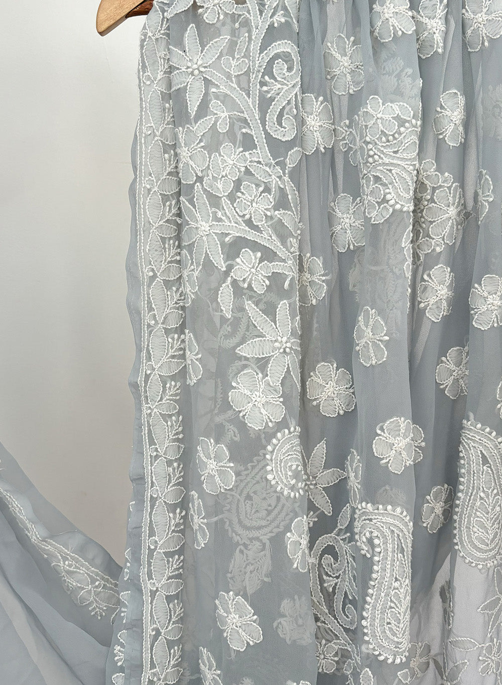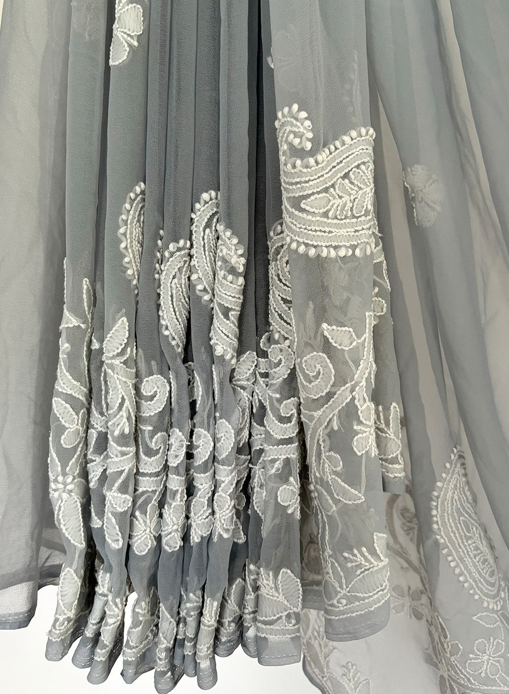 Gray - Aks Georgette Chikankari Saree