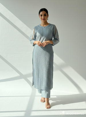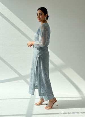 Gray Full Jaal - Fiza Bahaar Georgette Chikankari Kurta