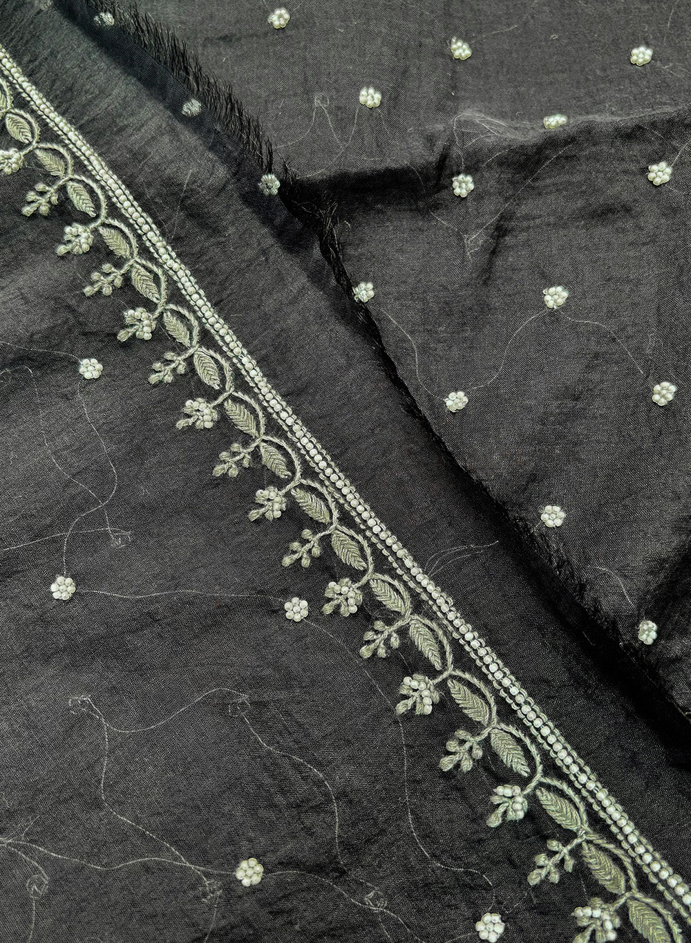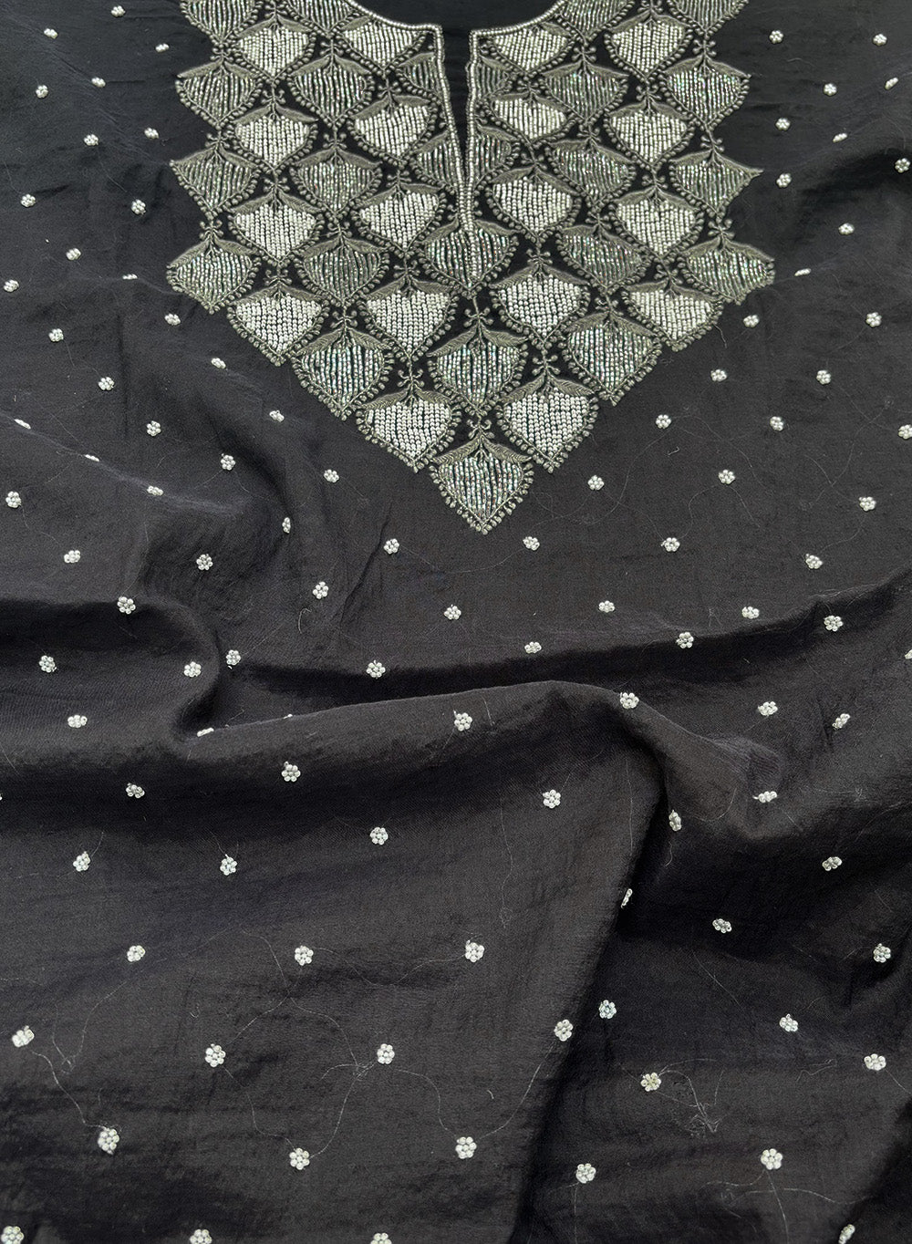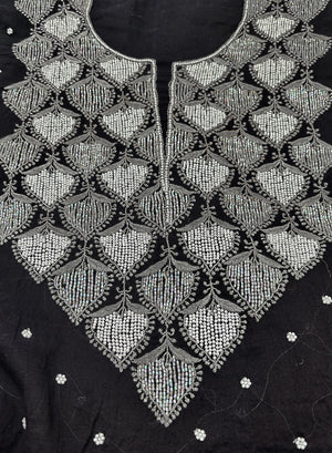 Black - Nayaab Mul Chanderi Kurta & Dupatta Fabric
