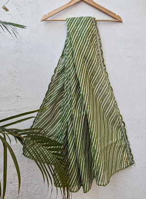 Green Lehariya - Nazm Kota Cotton Chikankari Dupatta with Sequins