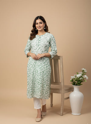 Gul-daar Olive Green - Bahaar Mul Cotton Chikankari Kurta