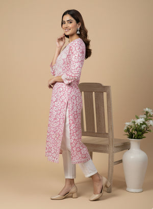 Gul-daar Pink - Bahaar Mul Cotton Chikankari Kurta