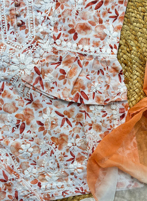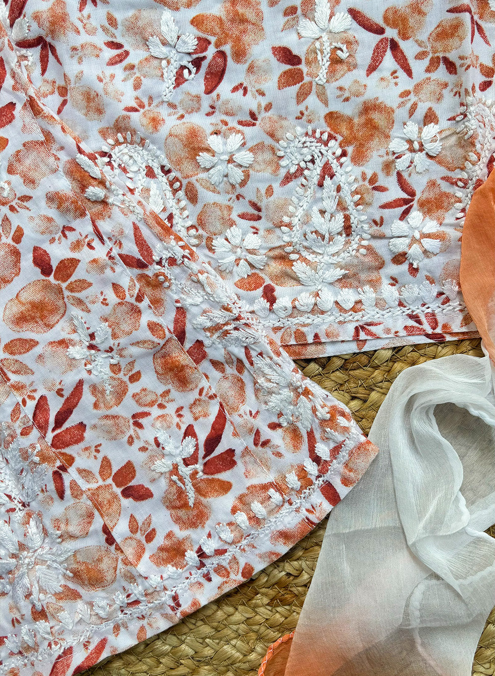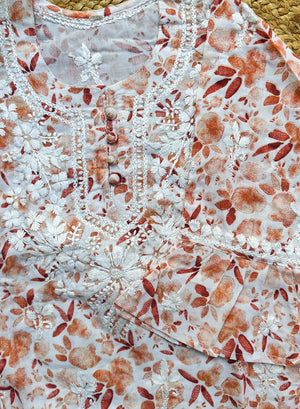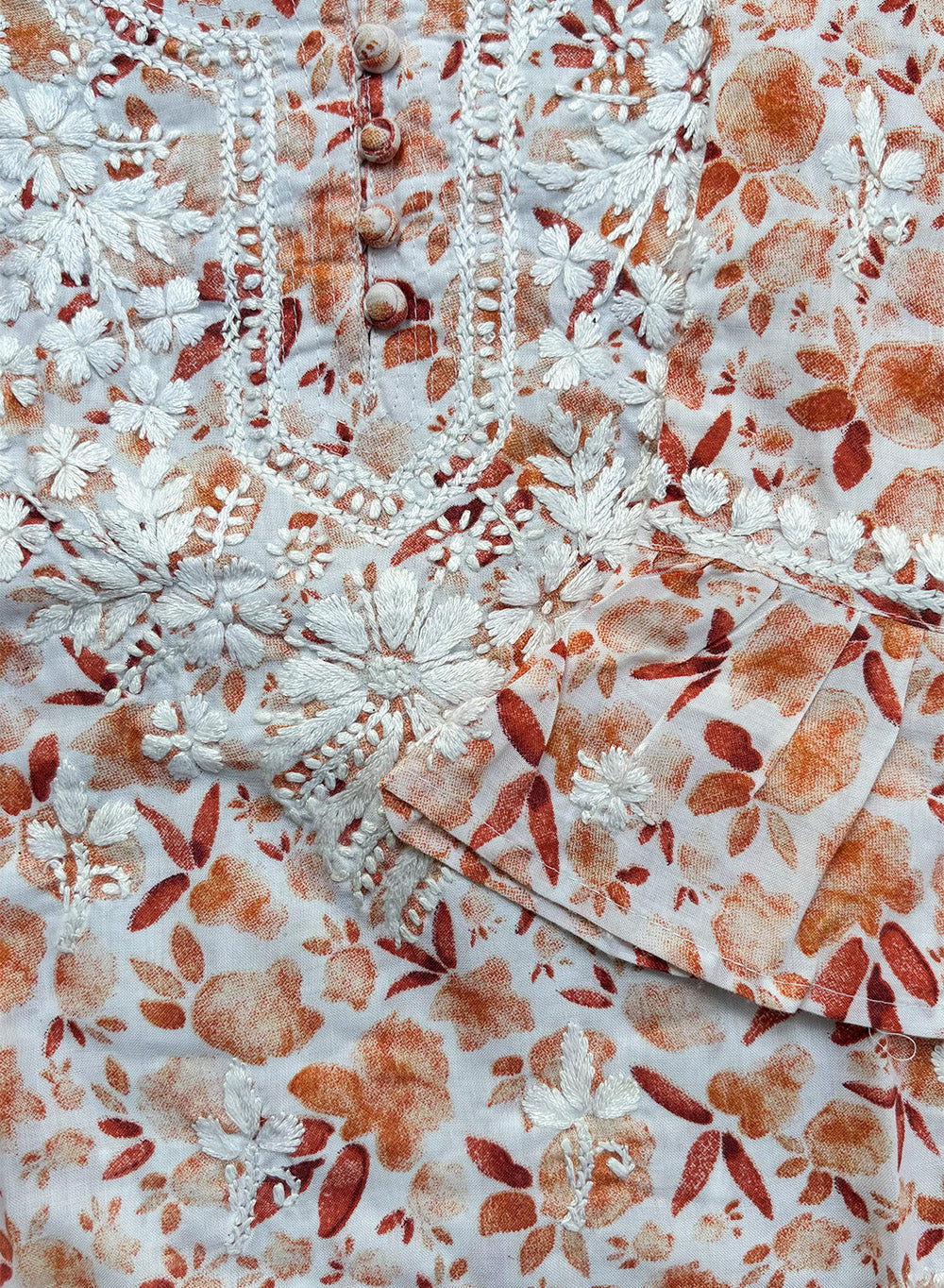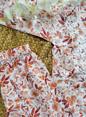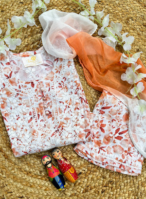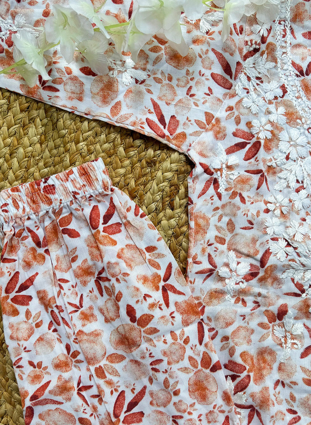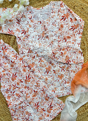 Gulnaar Orange Printed - Cotton Chikankari Kidswear Set