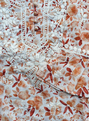 Made from the softest, premium cotton fabric, each stitch is meticulously done by skilled artisans, making every piece unique and one of a kind, showcasing the beauty of floral printed cotton combined with delicate embroidery.