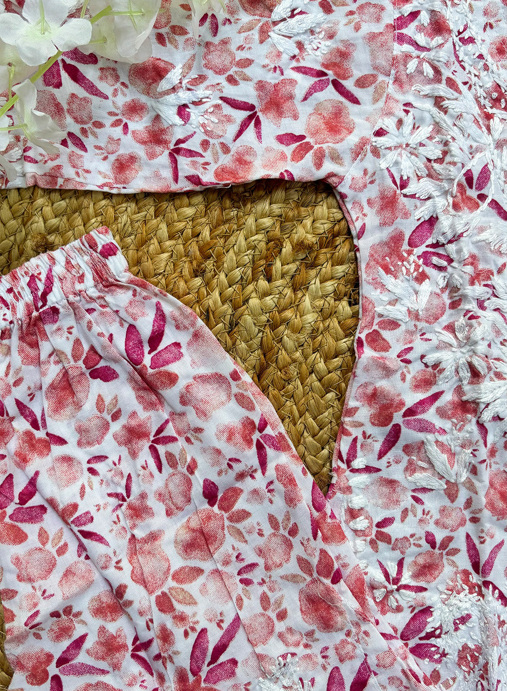 Made from the softest, premium cotton fabric, each stitch is meticulously done by skilled artisans, making every piece unique and one of a kind, showcasing the beauty of floral printed cotton combined with delicate embroidery.