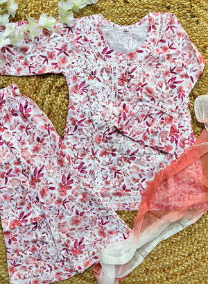 Introducing our Gulnaar Pink Printed - Cotton Chikankari Kidswear Set, from the Nanhe Farishte Collection.