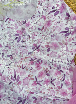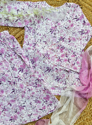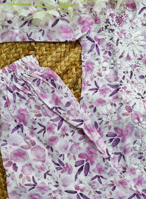 Gulnaar Purple Printed - Cotton Chikankari Kidswear Set